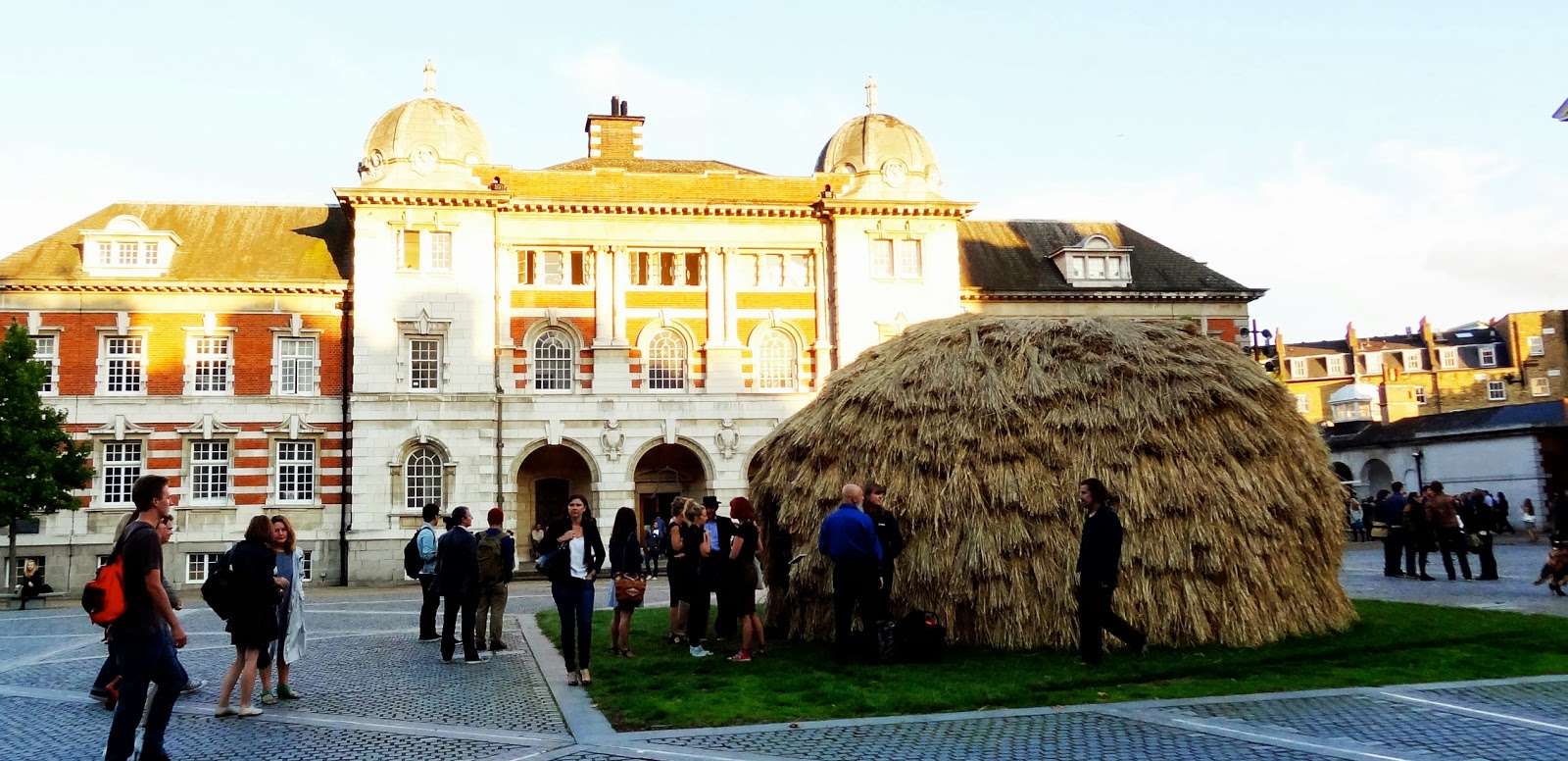 From the outside, her work looks like a huge stack of hay in the middle of the city.