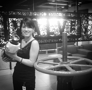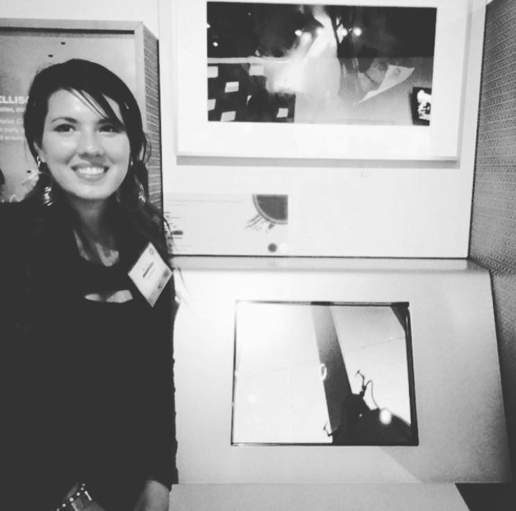 Opening night at Icons of Science Fiction in front of my painting of GLaDOS: