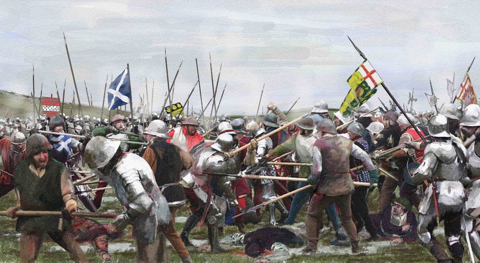 Then James IV himself leading a great force came on to Surrey and Lord Darcy's son who "bore all the brunt of the battle". Lennox and Argyll's commands were met by Sir Edward Stanley.