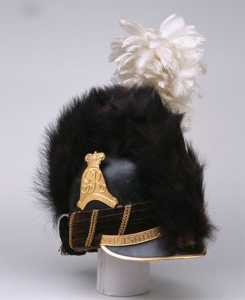 The headgear of the British light dragoons was known as the Tarleton helmet, named for the officer who had invented it. It consisted of a rounded helmet and peak over the eyes, both made from leather boiled in chemicals to make it exceptionally hard – tough enough to turn a sword blade. Along the top, running from front to back, was a fur crest. Officers sported a feather plume on the left side and a coloured cloth – called a “turban” – tied around the base of the helmet.