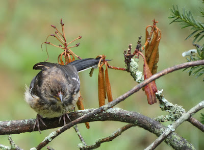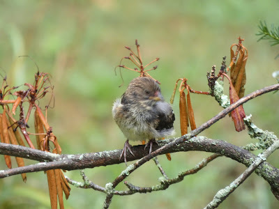 This towhee is dealing with wet feathers.