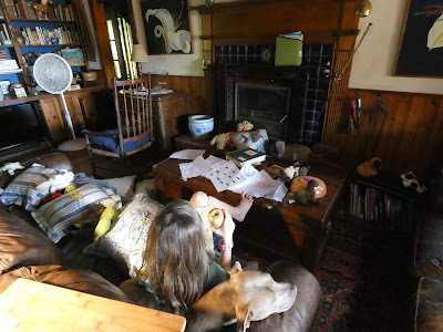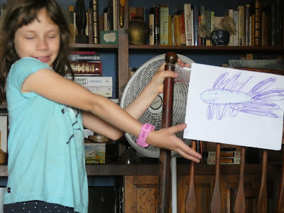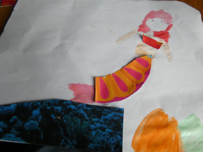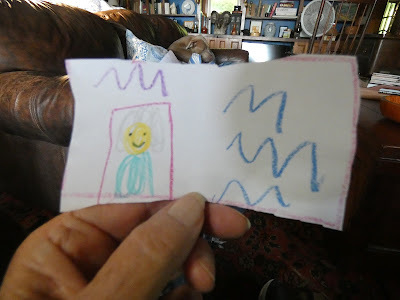 I made a mermaid. Then it rained and we went and sat on the porch. It was much cooler.