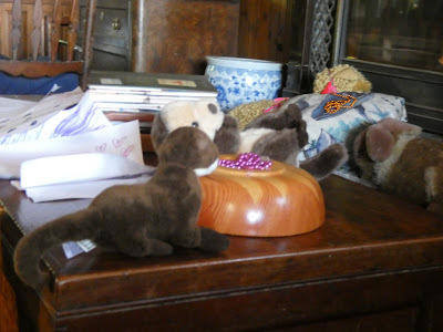 This is Otter and Weasel at a table (stuffy Otter, not my dog.)