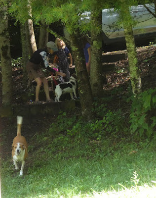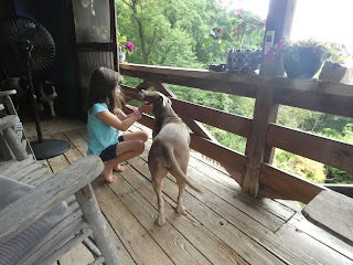 Meema and Grumpy were giving Bob a haircut and I helped with some thinning scissors until it thundered very loud and I jumped up to run in the house and dropped the scissors and we think they fell under the porch because there is a big gap between some of the boards in the floor. There are no pictures of this event