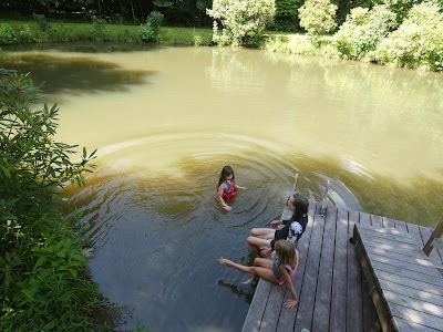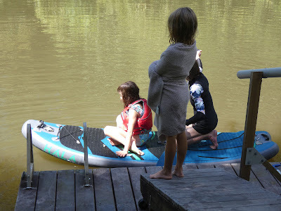 Our friend Louise invited Josie to have a play date at their pond with her friend who lives next door. Louise has paddle boards, kayaks, floaties, and endless patience. A good time was had by all,