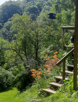 Early June and the wild daylilies are ablaze along roadsides and branches. I planted his particular clomp during our early years here and they always make me smile when they begin to open.