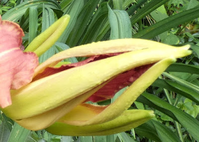 Back when we were living in the barn, I experimented with tempura daylily flowers--delicious and slightly oniony tasting but a lot of trouble--and we also added the buds to stir fry--pretty good but, as I recall, a tad slimy.