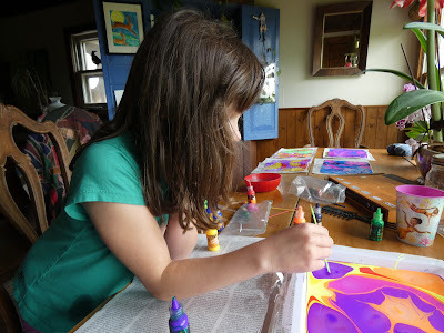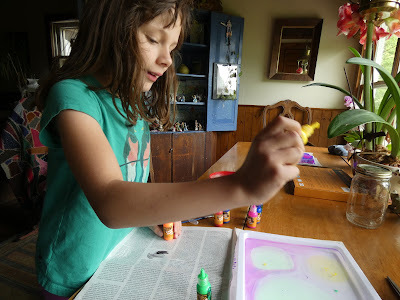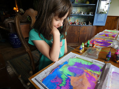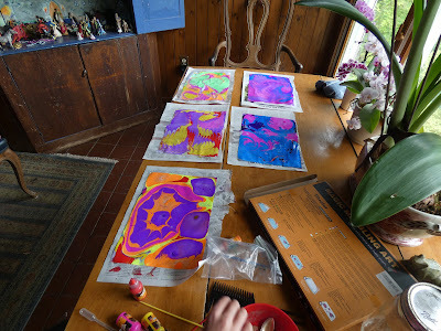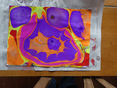 My friend Sandy sent my birthday present early ! There were books and stuff for marbleizing paper. It is AMAZING!