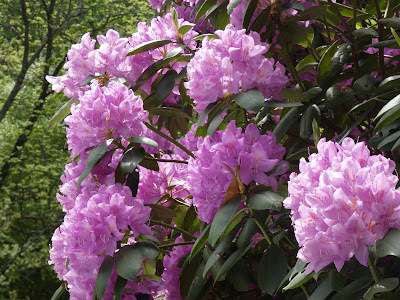 And now, oh joy!, I have my foxgloves! They made leaves last year but now they have put up into stately spires of purple, white, and lavender.