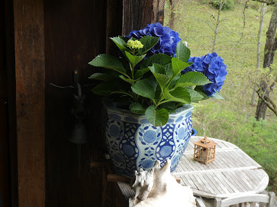 A beautiful hydrangea a friend brought to the party. When it finishes blooming, we'll plant it down at the party site.