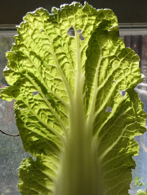 . . .or Napa, as the grocery store calls it. I was preparing to cut up a few leaves to add to my lunch time ramen when the sunlight hit them and I had to take some pictures.
