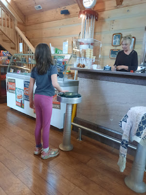 On most Mondays, Meema takes me to Cynthia's Pharmacy and Gifts to get an ice cream cone. I always have a waffle cone with two scoops and sprinkles.