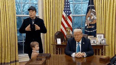 I'm concerned that the GOP is facilitating a white supremacy movement by allowing the F(elon)OTUS to allow Musk to do pretty much whatever he wants--snap up lucrative government contracts, bring his kid to work in the Oval Office, enable importing other white supremacist South Africans, and generally run amok in the name of government efficiency.