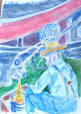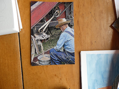As I am with the watercolors. The above is painted from a photo I took some years ago at a threshing--an event carried on as a tradition by a local family. Keeping on.