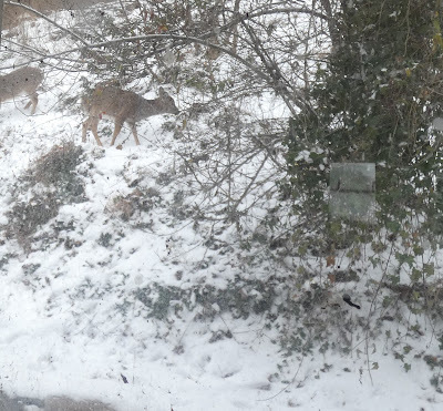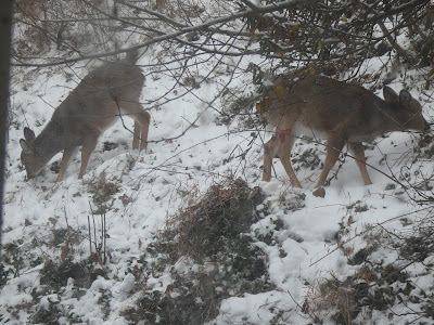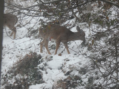 After the plague that wiped out so many deer a few years back, it's nice to see these pretty critters--though come summer I'll be cursing them if they eat my hostas.