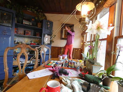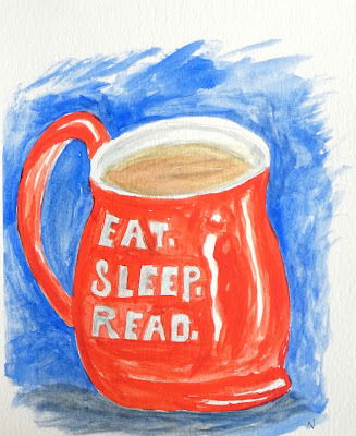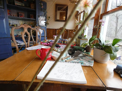 The Tampa cousins (both painters) have nudged me into attempting more drawing from life (rather than photos as is my wont.) This is the mug that follows me around all day--usually with hot water, sometimes tea, occasionally grog (hot water, rum, lemon.)
