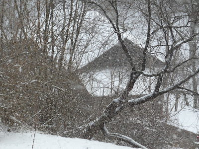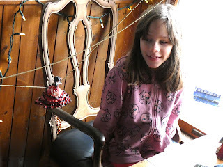 It snowed today but school was out anyway and I wa up at Meema and Grumpy's. First (after pancakes) I did some sewing with the sewing kit Sandy gave me for Christmas.