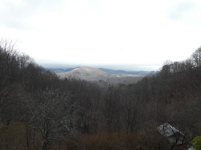The day never really dawned, as such. Misty, gray, chilly--it wasn't till about 3:30 that a brush of sun showed on the slopes across the river. And that was short-lived.