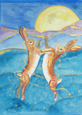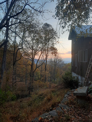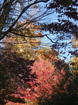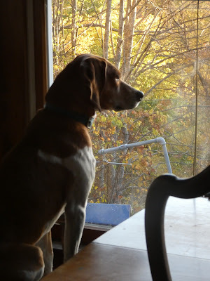 Could be worse. These days the leaves are falling, swirling gold around us till I feel like Danae in the myth. It's kinda magical--but hard to capture on camera when a hound is pulling at you.