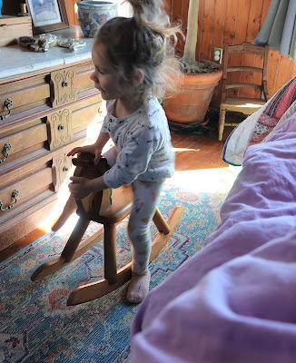 Because Jenny likes to run around and howl, we try not to let her out on her own recognizance till after nine. And she's up by seven thirty. So this means a leashed stroll out back to attend to the necessary.