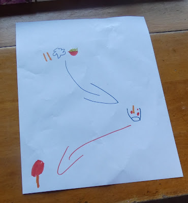 After Meema and I read library books, I drew a picture of my plan to make strawberry and milk popsicles. Meema gave me a bunch of popsicle sticks to take home.