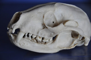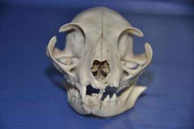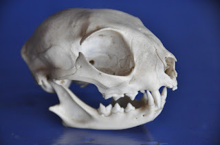 While I'm not a fan of stuffed animals or mounted heads, I've always been intrigued by the beauty of bones. This first (and third) is a cat skull, discovered on an abandoned property and (thankfully) already clean and white. Look at the size of those eye sockets!