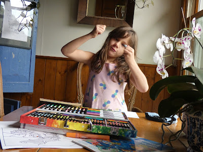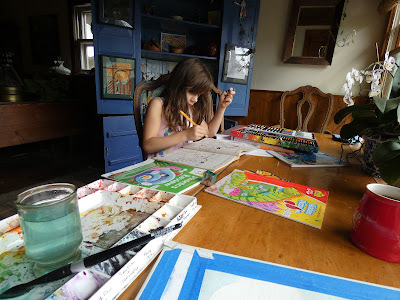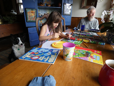 Of course there was reading and she chose this charming book The Little House. KC Larsen sent it to her some time back and this is the first time she's read it on her own. It's the story of a little house in a field of daisies with apple trees all around. And a pond. "It's like my house," Josie exclaimed. It's a lovely little story--thank you, KC!