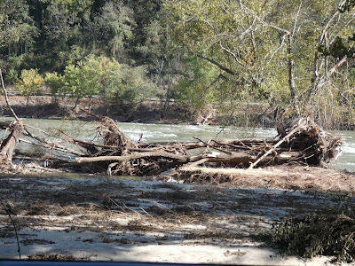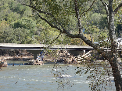 Fallen trees and debris, often hanging from the trees that remain, have turned our once beautiful French Broad into a scene of ugly devastation.
