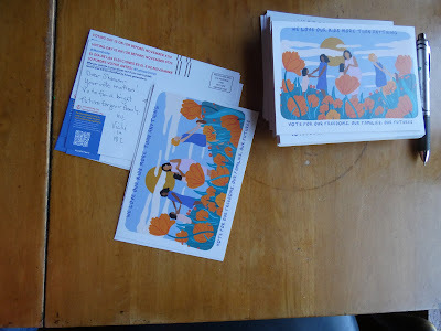 I just received an email from Moms Rising. There are more than 71,043 postcard volunteers facilitating about 5 million postcards to infrequent voters.