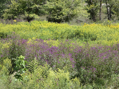 On my weekly trip to the grocery, my heart was lifted by the sight of swathes of bright goldenrod and purple ironweed, filling a bottom by the river with the intimation of coming autumn.