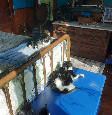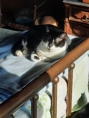 Well, Angeline, we do have our Night Games--chasing the catnip mousies and knocking things off the bedside table. Not to mention jumping over (and sometimes on) The Woman. You heard that funny noise she made last night when I landed on her belly. Also, I take the occasional stroll outside. You should try it--very refreshing and The Woman or That Man are always around to open a door when I want to come back in and use the litter box. Really, it would give you a whole new perspective.