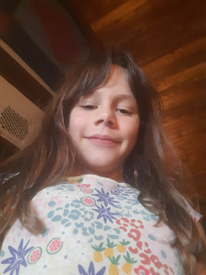 This is me. I took the pictures and Meema is writing the words I let her say. And this is a selfie I did.