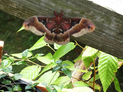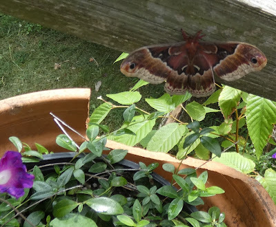 This pretty thing is a Promethea Silk Moth (I think.) I found it on our hearth hidden behind some of Josie's books, and carried it outside, pausing to grab my camera.