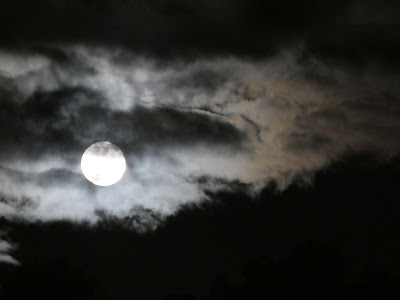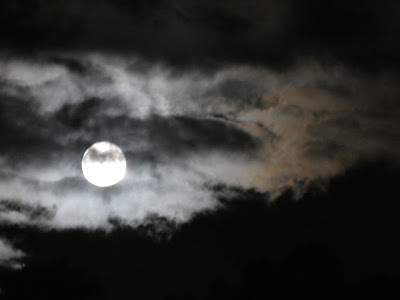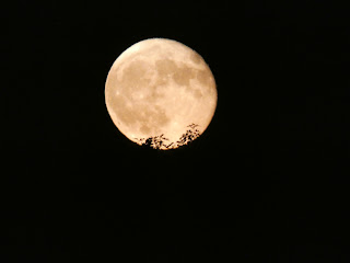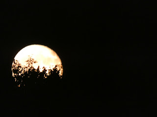 Monday night was cloudy and the moon was shy. Last night was clear, but she rose just behind a large poplar and took a while to show her splendor.