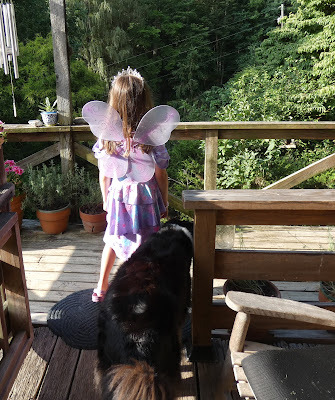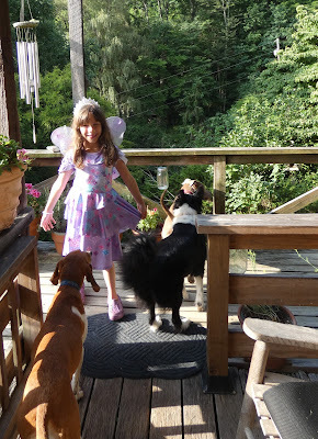 We try, in accordance with Josie's folks and our own thoughts on the subject, to limit Josie's screen time. The established rule up here is video time at 1:00 and at 5:00, each preceded by her reading three books to me. Mostly, it works. Mainly because it gives Meema a break.