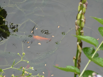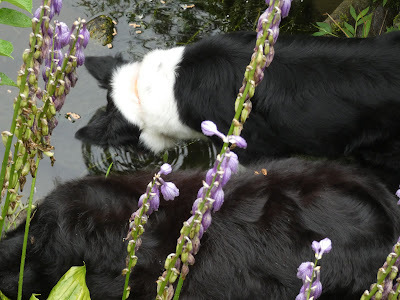 All the dogs love the fish food. Bailey and Bob steal it off the surface of the pond.