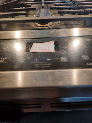"What time is it?" is a question I hear quite a lot. She's still shaky with analog clocks for anything but the hour, so I encourage her to look at the digital clock on the stove.