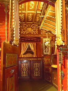 I'd love to have a vardo -- a bright-painted gypsy van--The traditional interior is spectacular if a tad busy for my taste.
