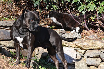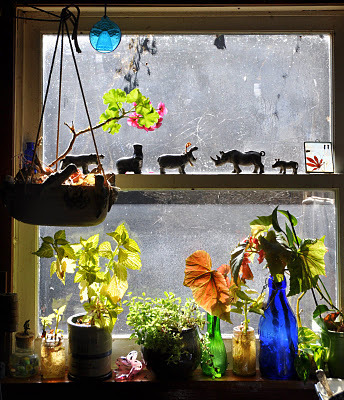 A bit later, I'd forgotten all about them when Willa set up a frantic barking from the dining room window."Monsters at the bird feeder! Danger! Velociraptors! DANGER!"