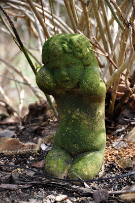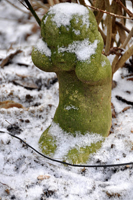 Ms. A suggested that my little garden fella needed ear muffs. But it's not easy to find winter wear in his size. . . .So I improvised.
