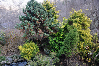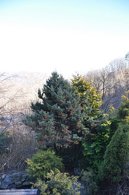 The so-called dwarf evergreens that I planted around our fish pool over twenty years ago have grown far taller than the word 'dwarf' had led me to expect. Evidently dwarf means 20 feet as opposed to 40.