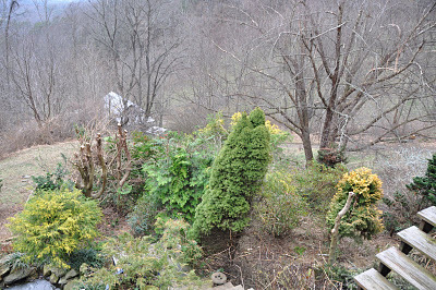 As things progressed and things began to open up, I grew bolder -- "Oh, just take that entire thing down to give the azalea and the Hinoki Cypress more room."