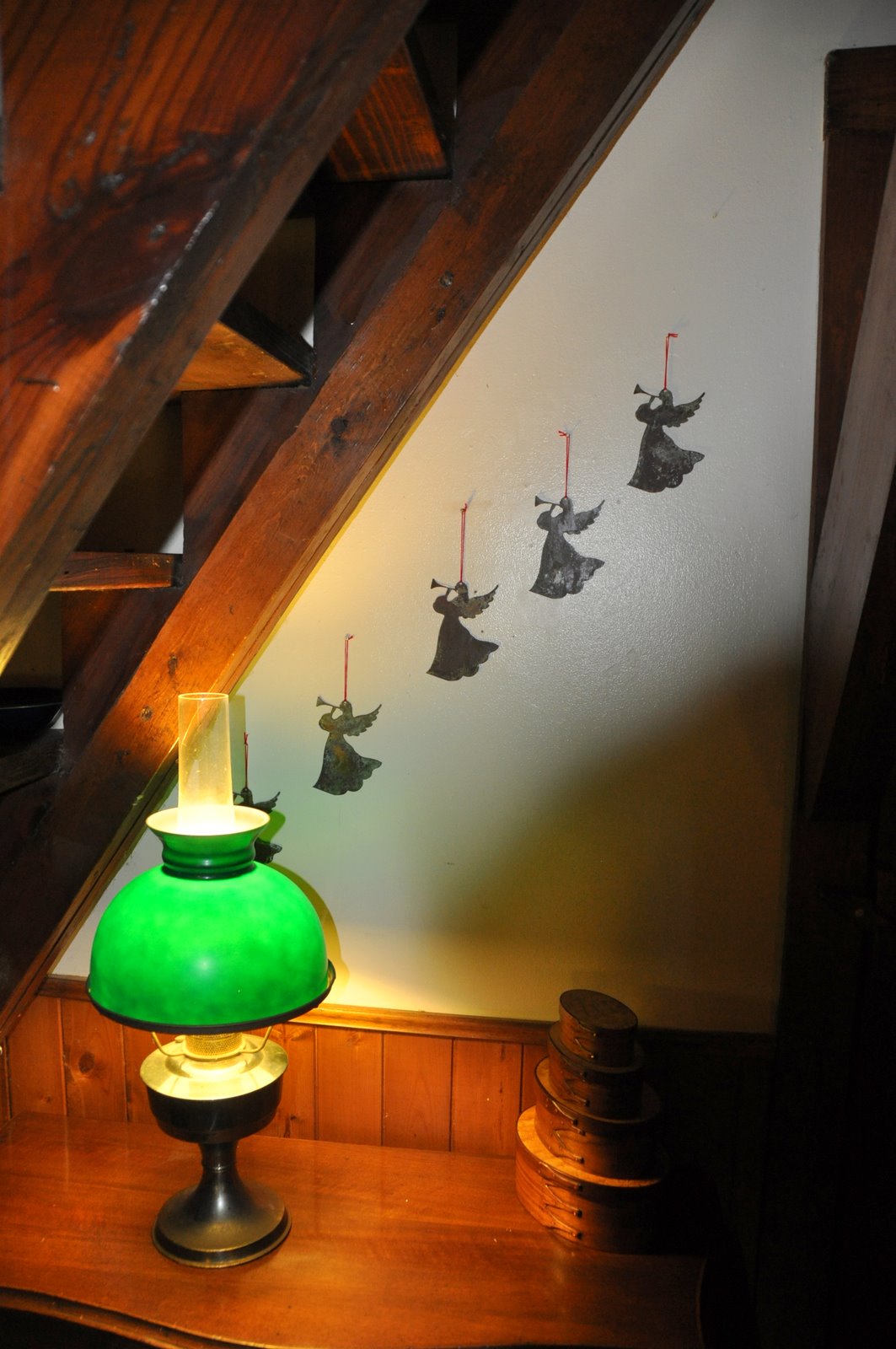 .... Little by little, they say. And that's how we're getting ready for Christmas. The flight of die-cut metal angels has returned to its usual spot. The tree has been wrestled into place. The Christmas pillow covers have been brought out . . .