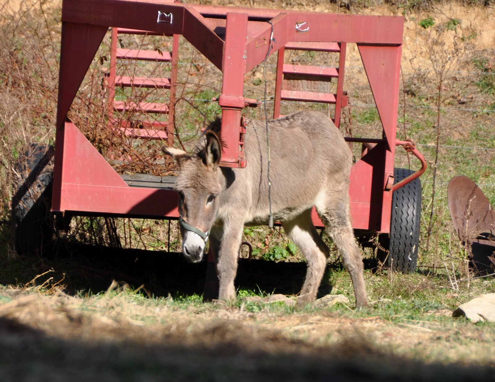 Kate the donkey seems to find her new thick winter coat a little itchy.