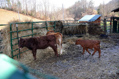 Silverbell is in season and, though she's had four calves, she's never had the Full Bull Experience since her previous owner used AI (artificial insemination) on all his cows. We are taking the easy way out -- opting to let Big Red do the job . . .