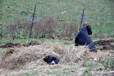 Otis feels the cold and was happy to take advantage of the hay. Pit bull or snuggle bug? You be the judge.