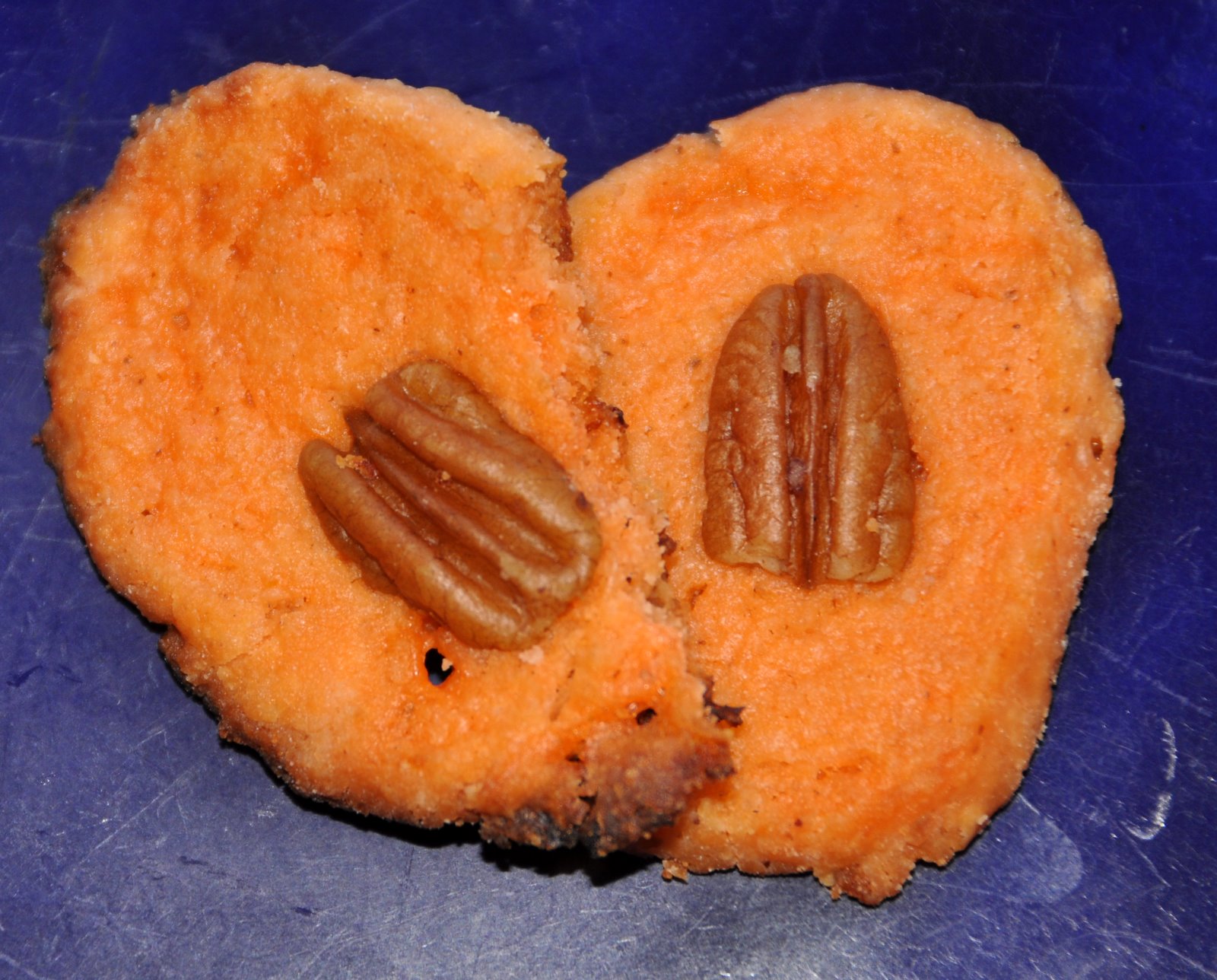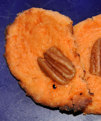 Slice and place on cookie sheet. You may top each slice with a pecan half, if you like.
