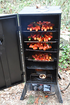 Wearing rubber gloves (or you'll be sorry), seed and de-rib them then smoke them till they're soft and roasted. (Justin and John used cherry wood but hickory or mesquite would work.)