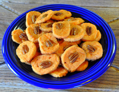 Kath asked for this recipe ( my grandmother's.) Cheese biscuits were a popular Southern staple at parties when I was growing up back in the Fifties. They're really shortbread, not biscuits in the American sense of the word. These little bites are terrific served hot as an accompaniment to Bloody Marys.