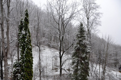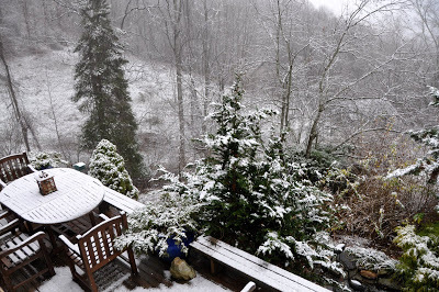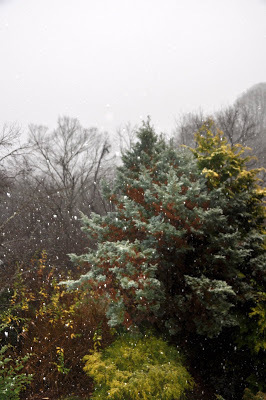 But I did toss out my decorative gourds and mini-pumpkins Tuesday morning. And then the sleet and rain turned to snow which meant . . .